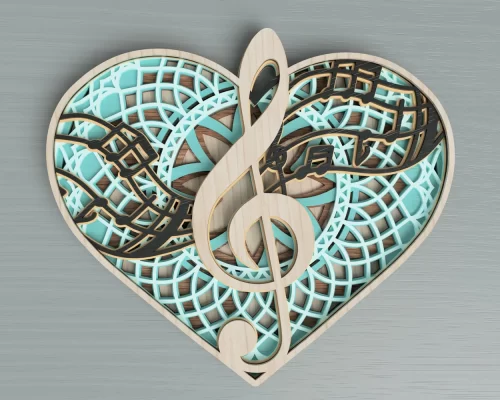 Corte Láser Corazón Multicapa con Nota Musical para Decoración y Regalos Personalizados