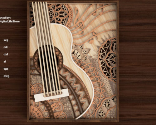 Archivos de corte láser para crear mandalas de guitarra en capas personalizables