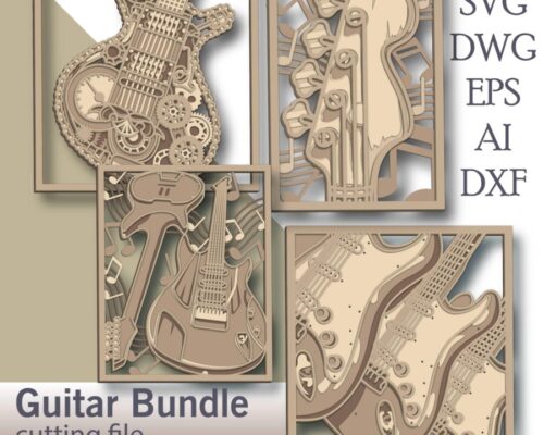 Paquete SVG de guitarra 3D para corte láser en madera contrachapada y papel – Diseño multicapa