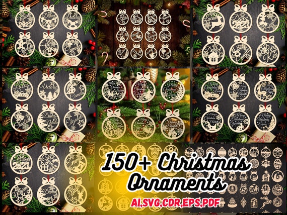 Adornos Navideños SVG: 150 Diseños Personalizables para Cortar en Láser y Decorar Árboles de Navidad
