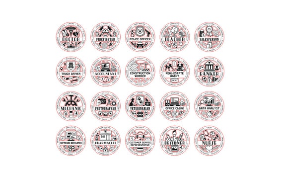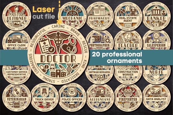 20 Profesiones SVG para Corte Láser – Medallas para Doctor, Bombero, Policía, etc – Descarga Instantánea