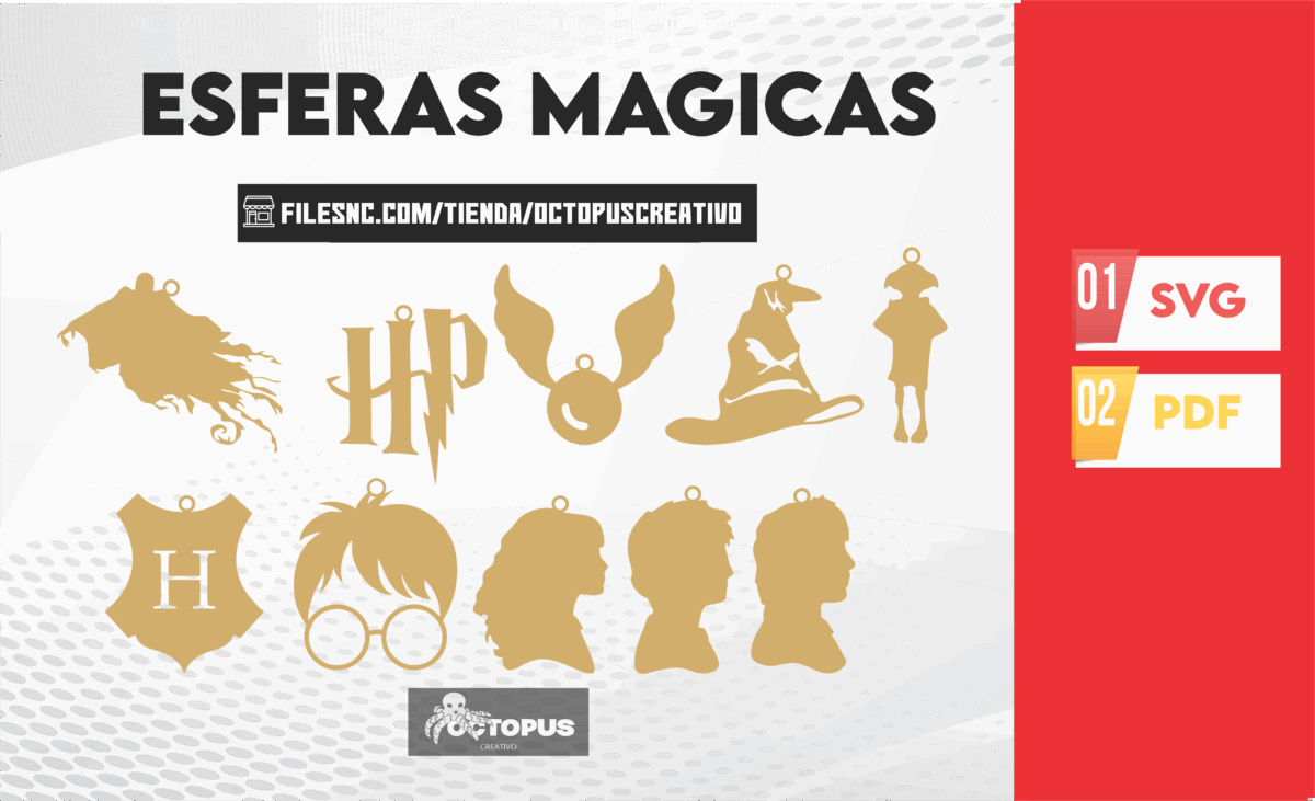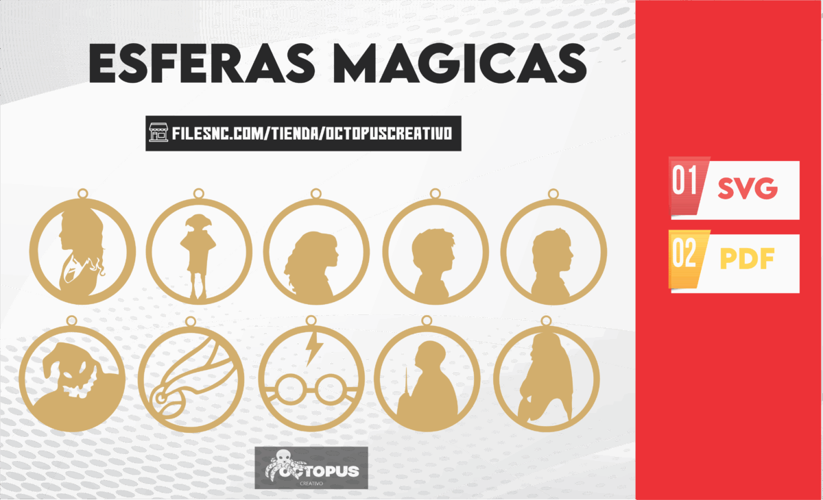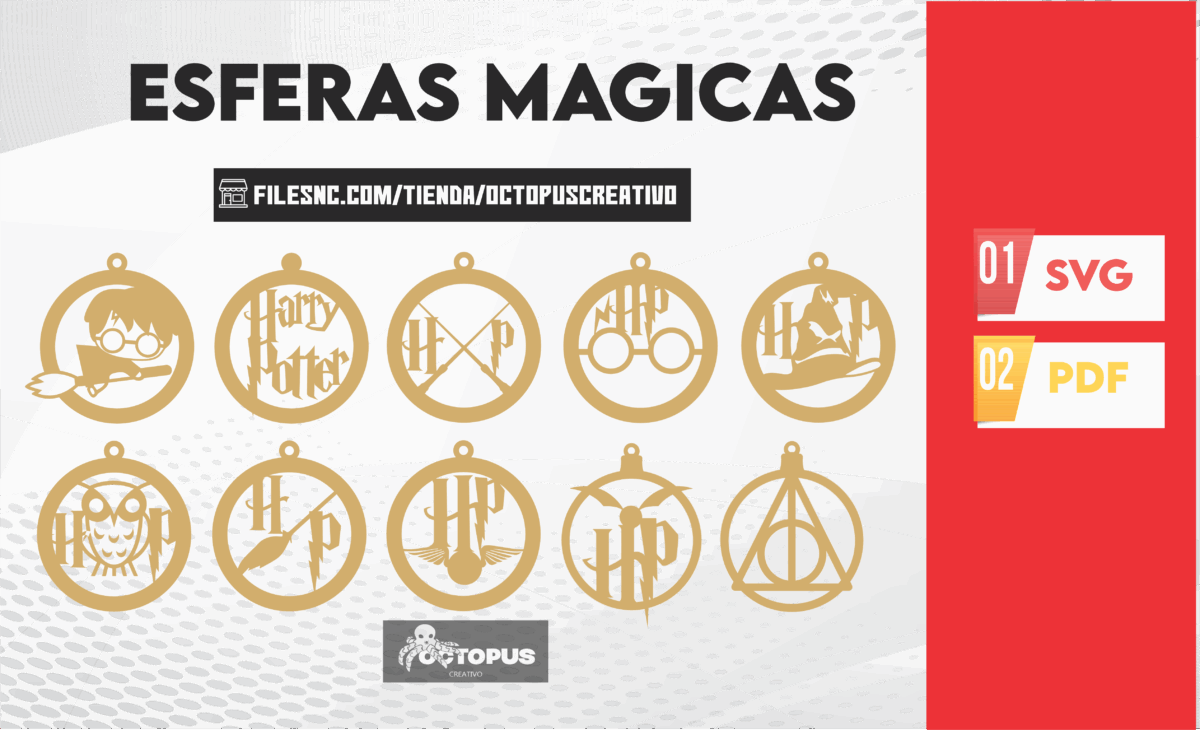 ¡Sumérgete en el mundo mágico de Harry Potter con este conjunto de 40 esferas temáticas! Nuestros archivos SVG para corte láser te permiten crear encantadoras decoraciones navideñas personalizadas inspiradas en el universo de Harry Potter. Decora tu árbol de Navidad, regala a los fanáticos de Harry Potter o utiliza estos archivos en proyectos creativos para dar vida al hechizo de la Navidad.