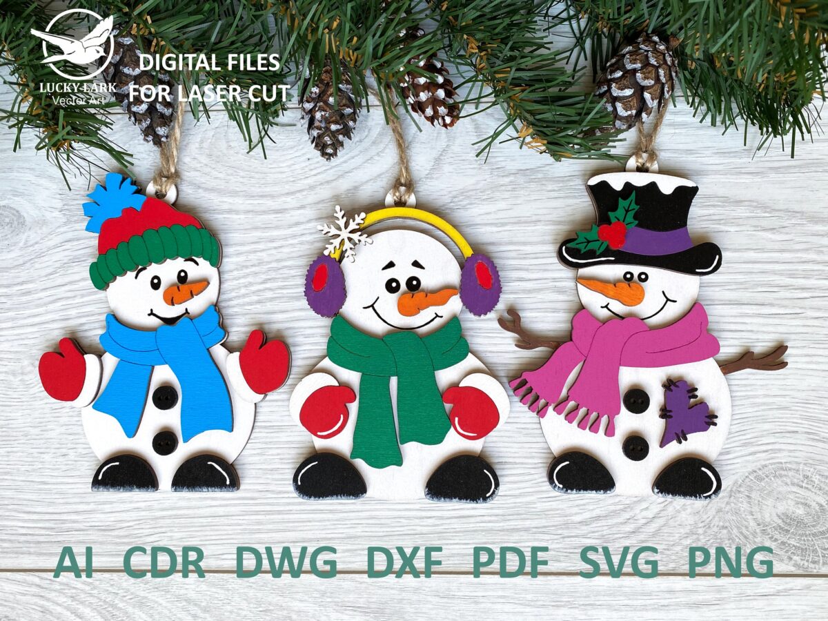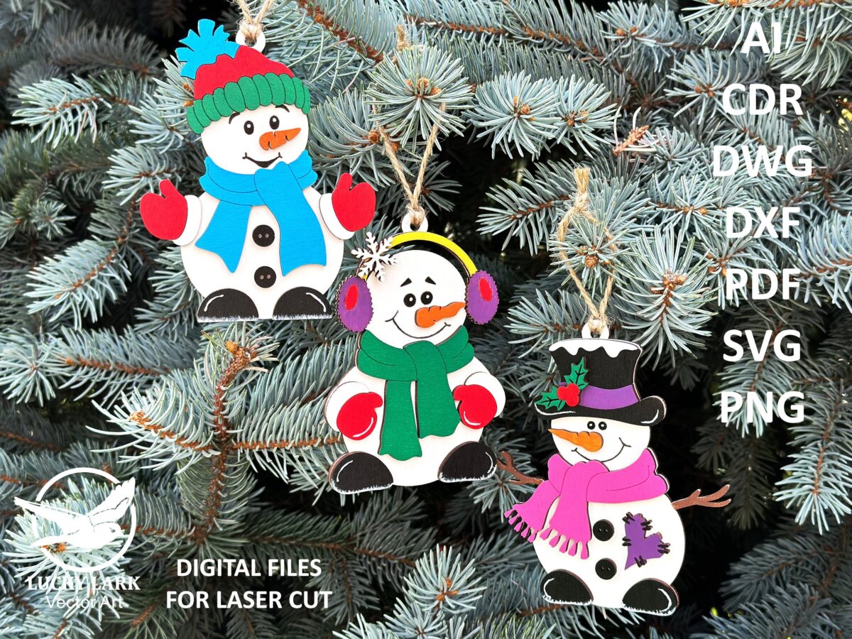 ☃️ Los muñecos de nieve, felices y simpáticos, son ideales para crear un ambiente acogedor y cálido durante las festividades. Cada figura está diseñada para ser tallada en madera de 1/8″ de espesor, garantizando un acabado perfecto y un estilo encantador.