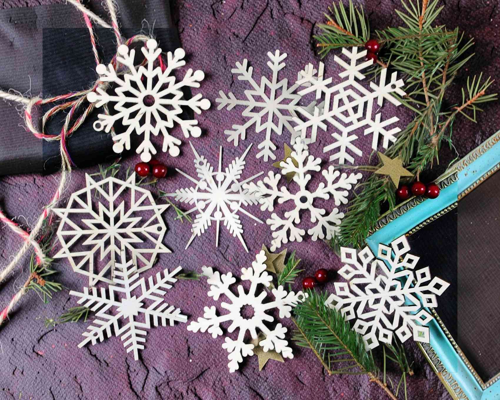 Adornos navideños de madera con copos de nieve – archivos para corte láser