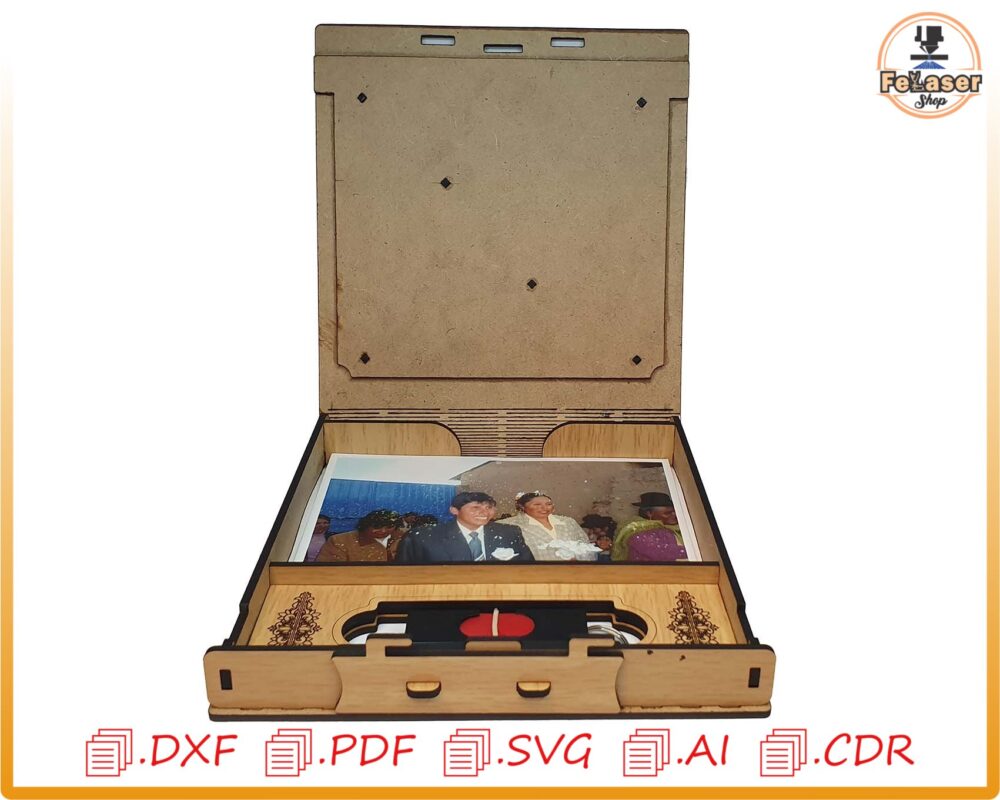 📦 ¡Presentamos nuestra plantilla de almacenamiento USB y foto, diseñada especialmente para el corte láser! Esta solución personalizada y funcional es perfecta para quienes buscan una forma organizada y estéticamente agradable de almacenar sus memorias.