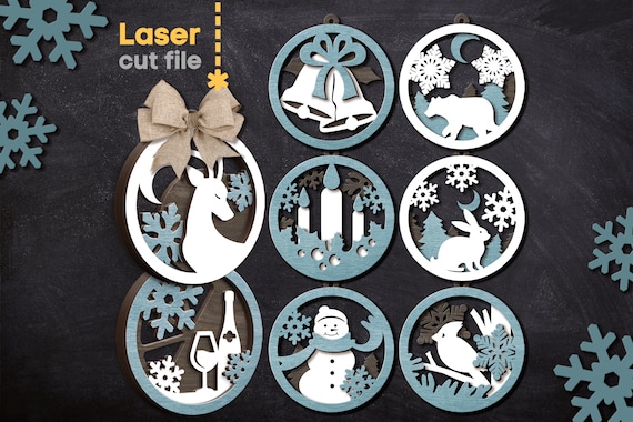 Archivo de corte láser para Glowforge: esferas y decoraciones navideñas – Descarga Instantánea