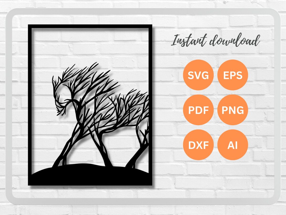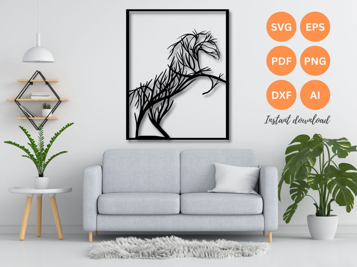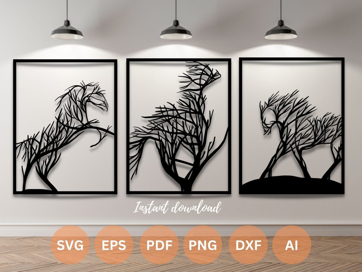 Archivo de corte láser de caballos – SVG, DXF, EPS, AI, PNG y PDF para arte de pared y Glowforge
