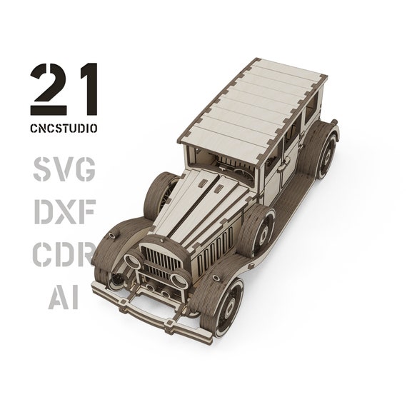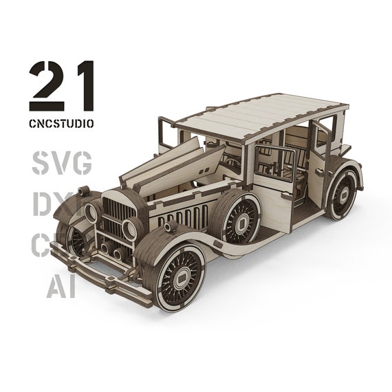 Archivo de corte láser para coche clásico 3D, DXF, SVG, AI y CDR – Rompecabezas de madera DIY