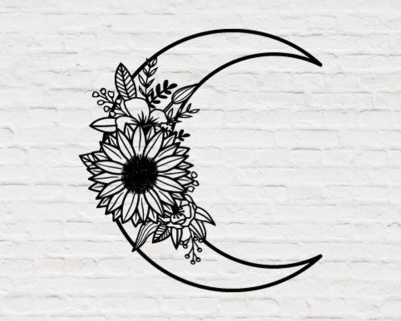 Corte láser decorativo de luna y flor para manualidades y proyectos creativos
