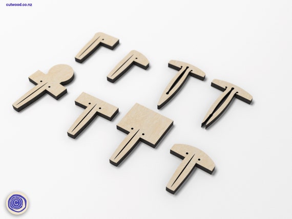 Recuerda que diferentes cortadoras láser pueden requerir pruebas con todos los tamaños de pines. Te sugerimos cortar uno de cada tamaño y verificar cuál proporciona el ajuste más apropiado. Este archivo es ideal para ser utilizado con madera contrachapada de 3 mm o similar. 🚀