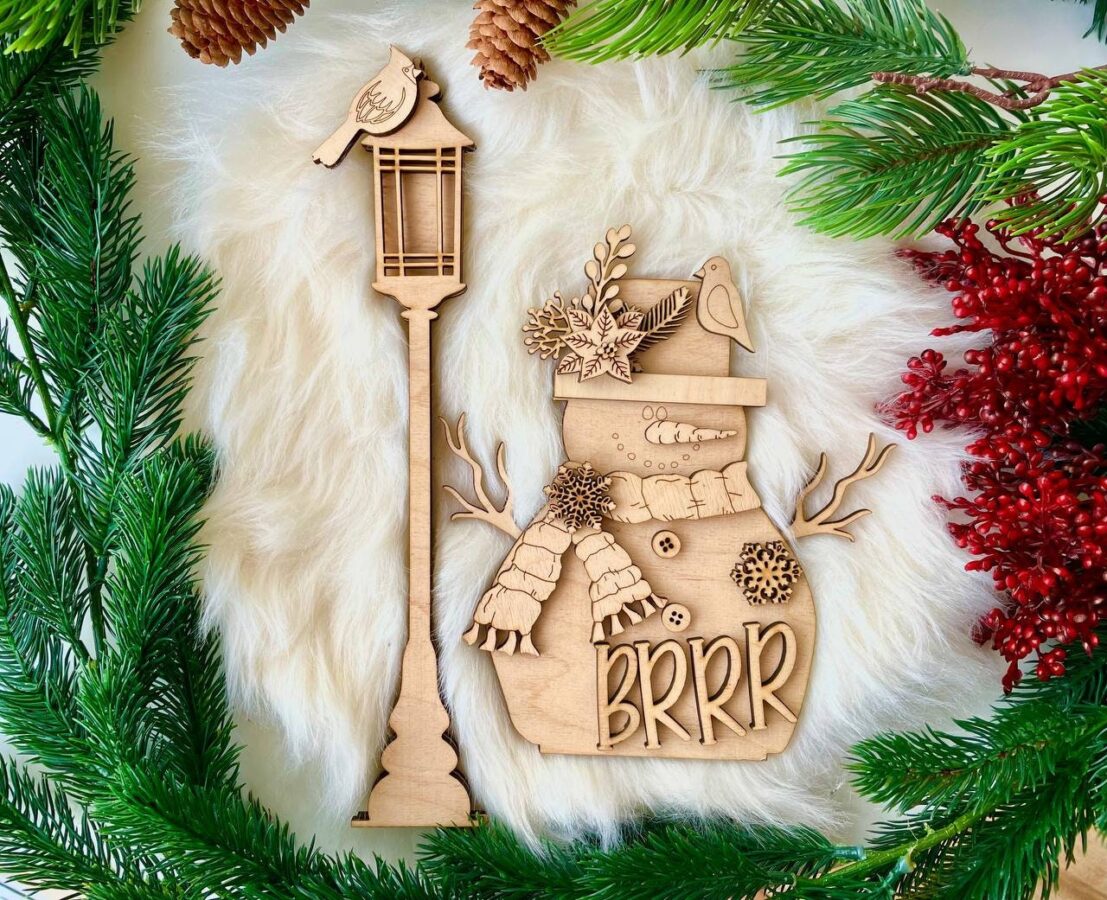 Archivo SVG de corte láser de muñeco de nieve y copo de nieve para decoración navideña Glowforge