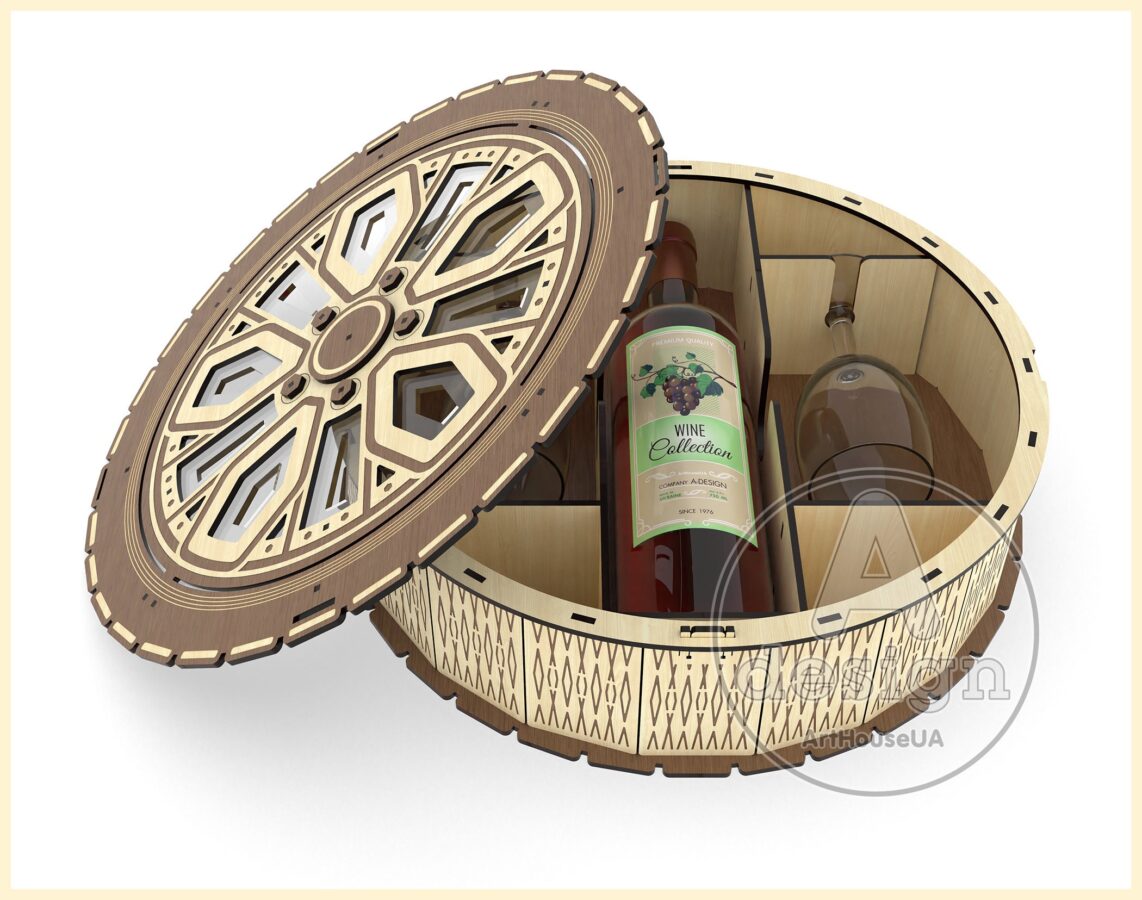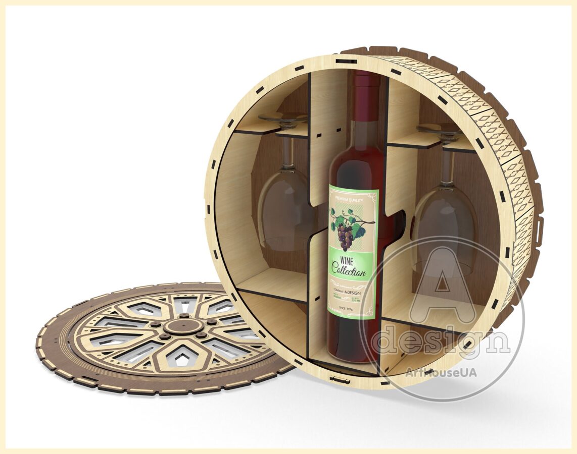 Archivo SVG de corte láser para caja de vino y soporte de botellas – diseño en madera contrachapada