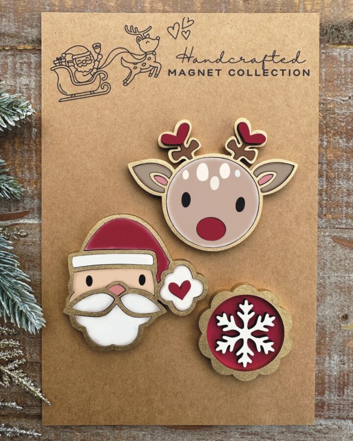 Archivo SVG de Imanes Navideños de Papá Noel y Rudolph para Corte Láser y Glowforge – Descarga Instantánea