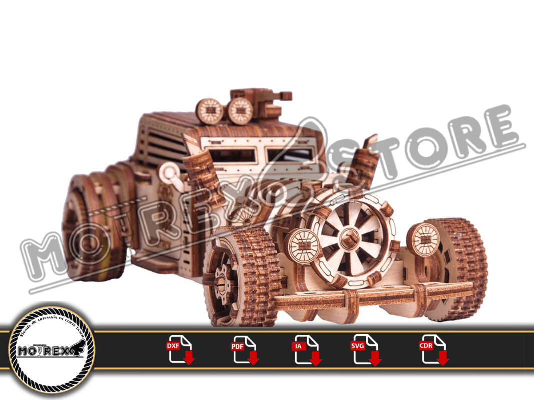 Archivos para maquina en corte laser, en madera de 3mm de un Auto Mad max 3mm modificado.