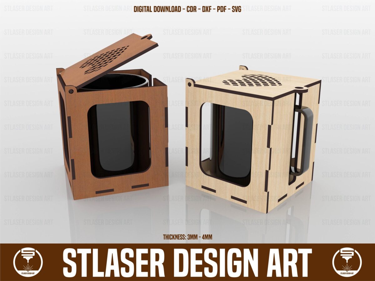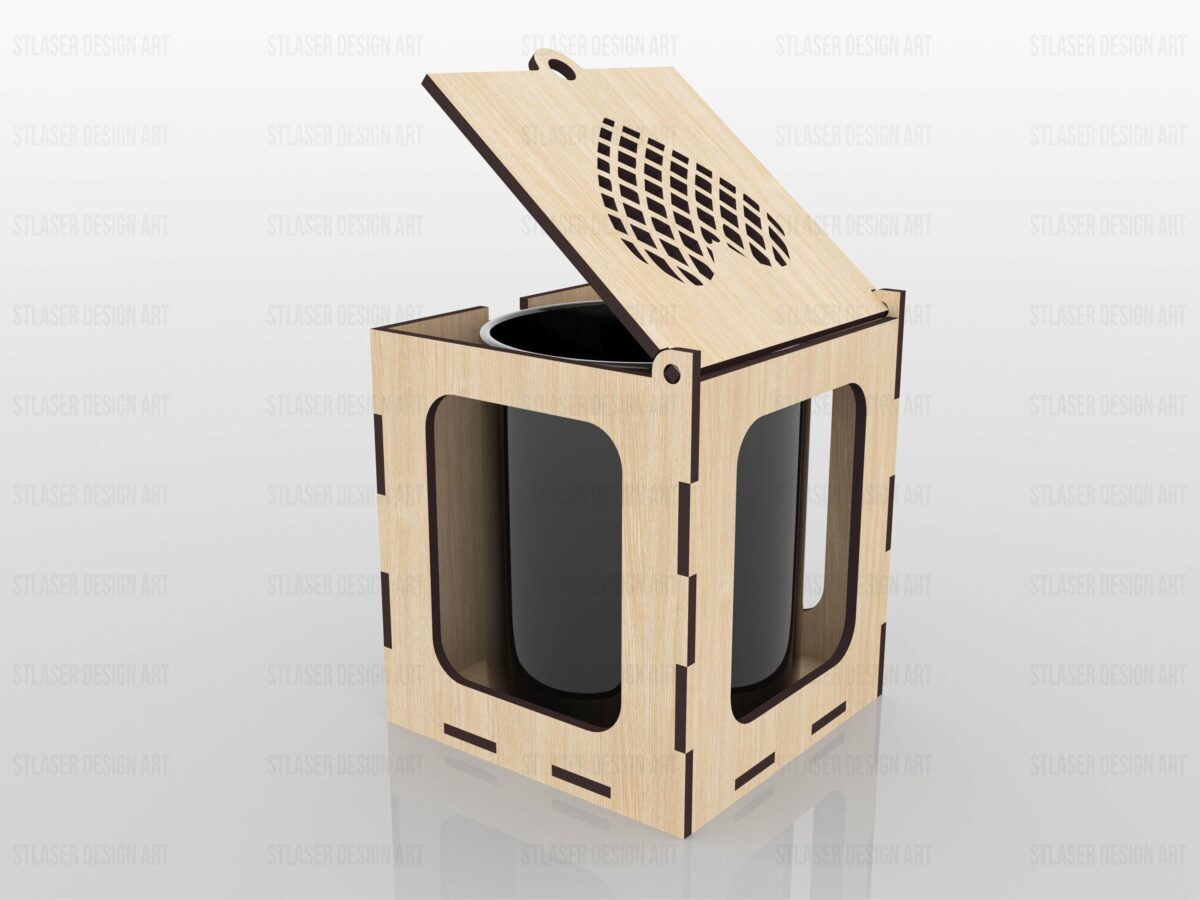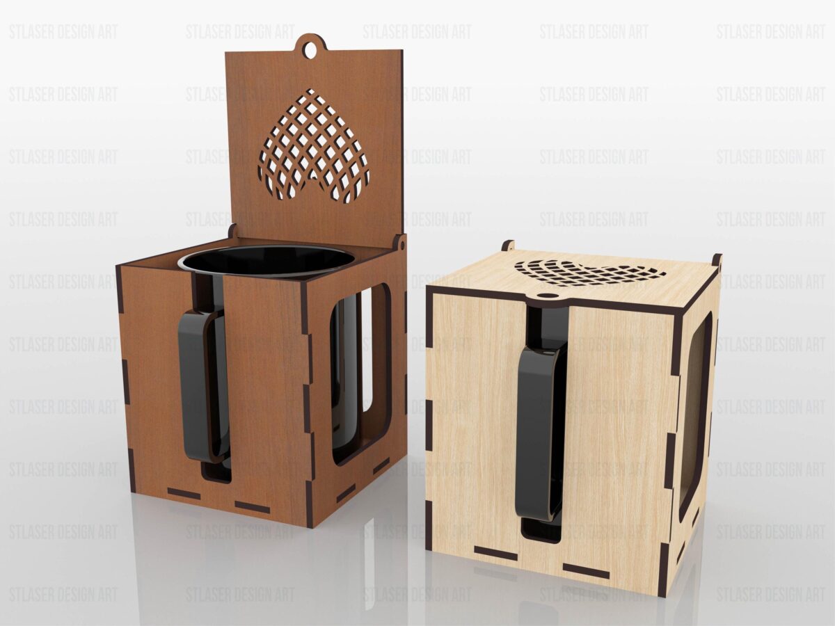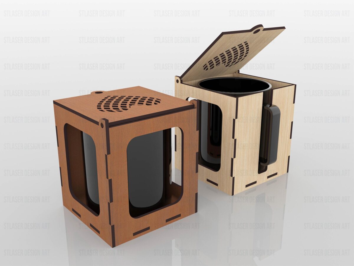 Archivos SVG de cajas para tazas de madera – Corte láser – Diseños vectoriales premium