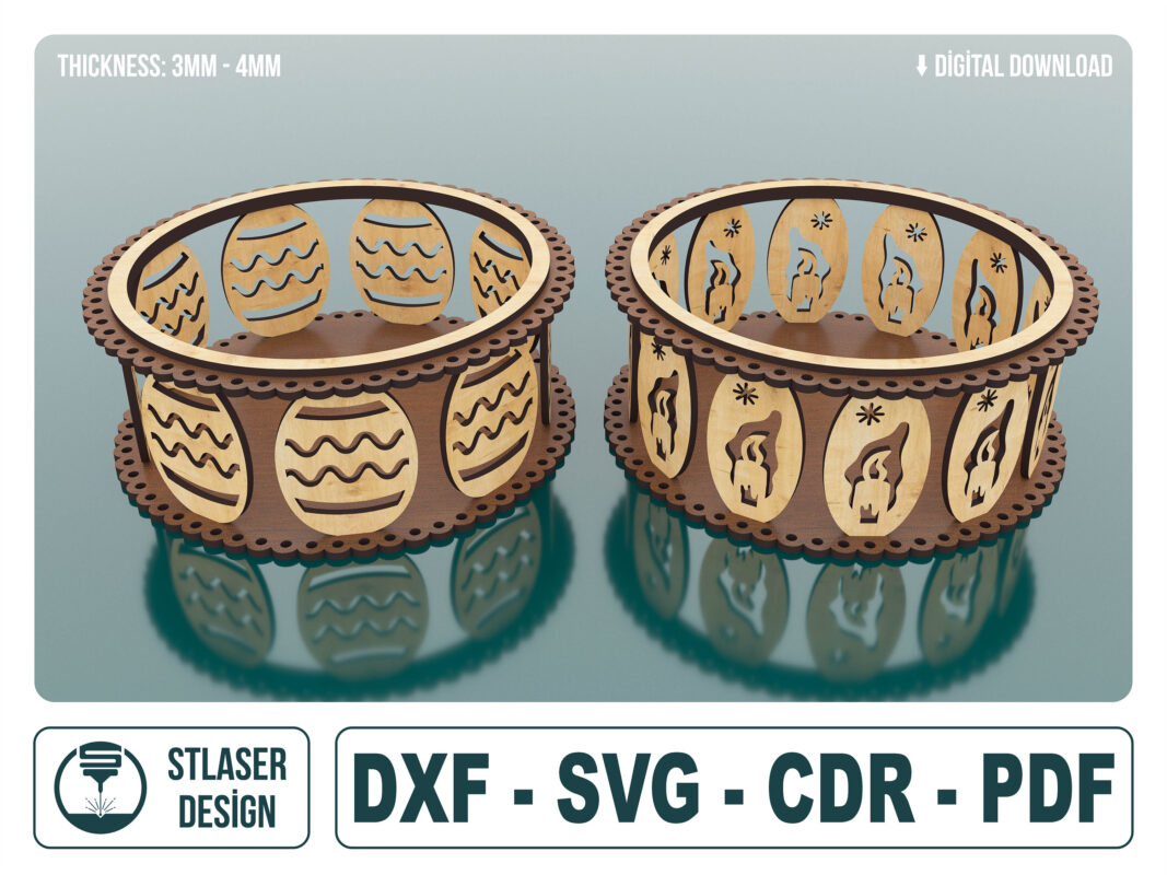 Archivos SVG de canastas decorativas para corte láser de madera – 2 estilos únicos para personalización