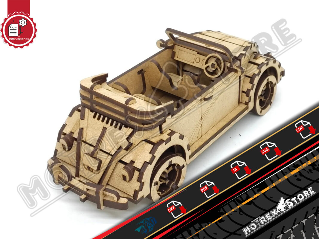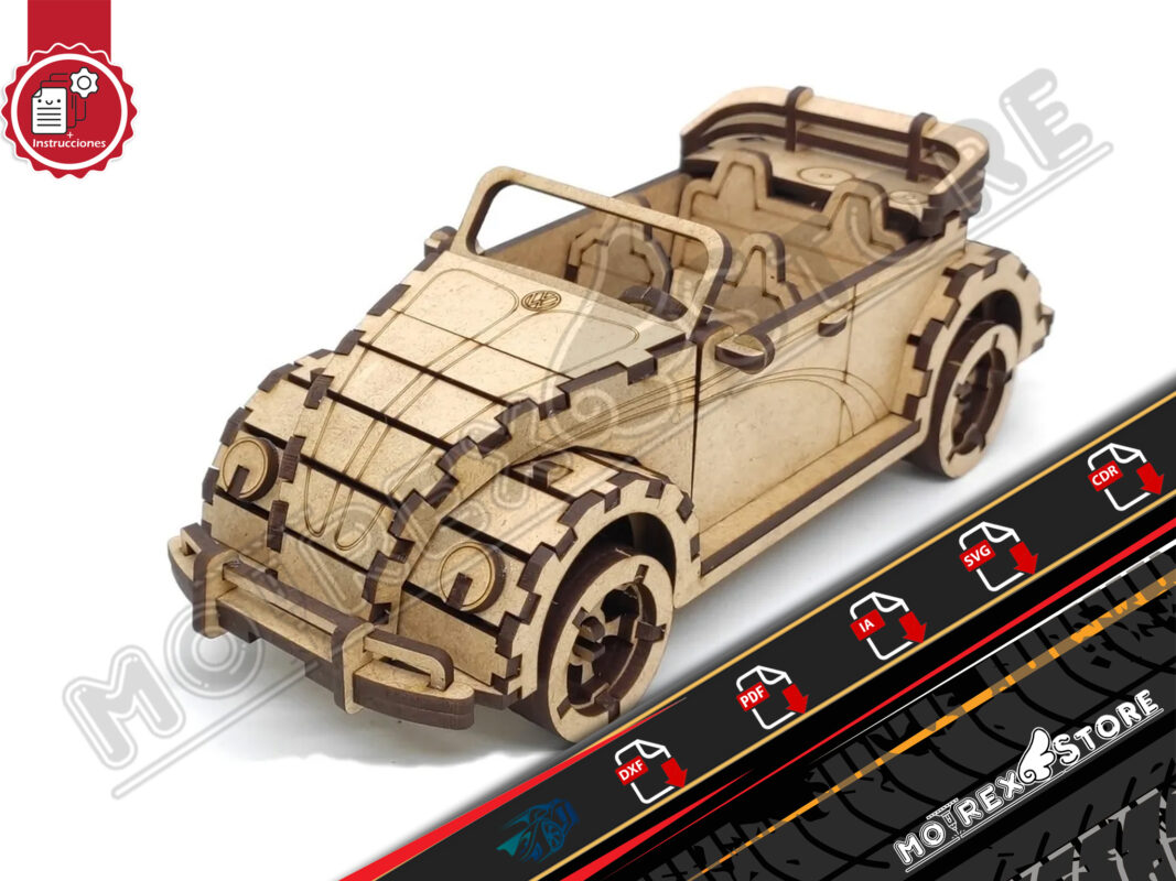 Archivos para maquina en corte laser (cnc laser cut), en madera de 3mm de un Volswagen Betlee.