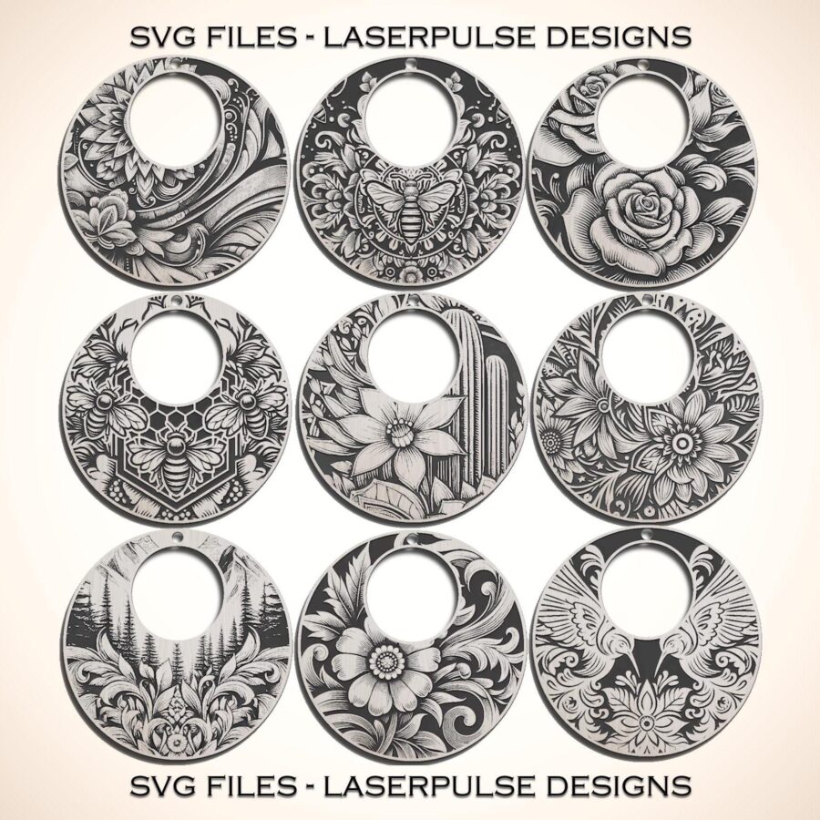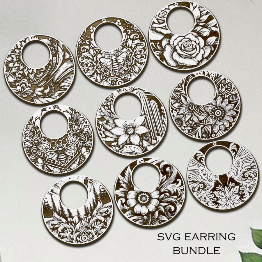 Aretes SVG Florales para Corte Láser – Plantillas Bohemias para Hacer Joyas DIY – Descarga Digital