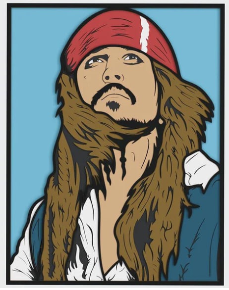 Arte de Jack Sparrow para corte láser, archivos descargables para madera y máquina de corte.