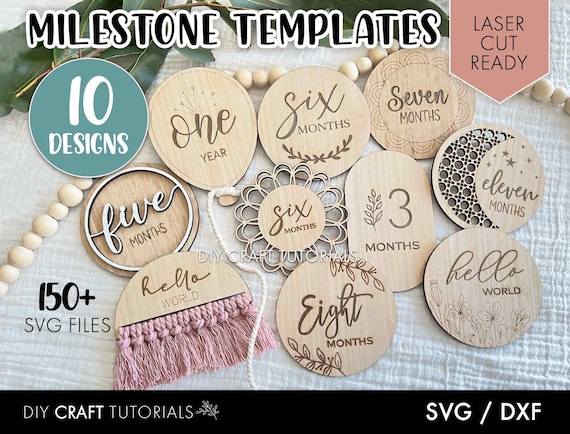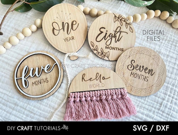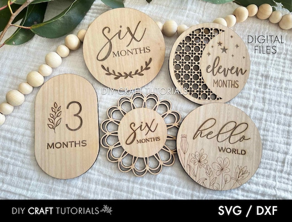 Paquete SVG de Hitos Mensuales para Bebés – Discos de Madera Cortados con Láser para Glowforge