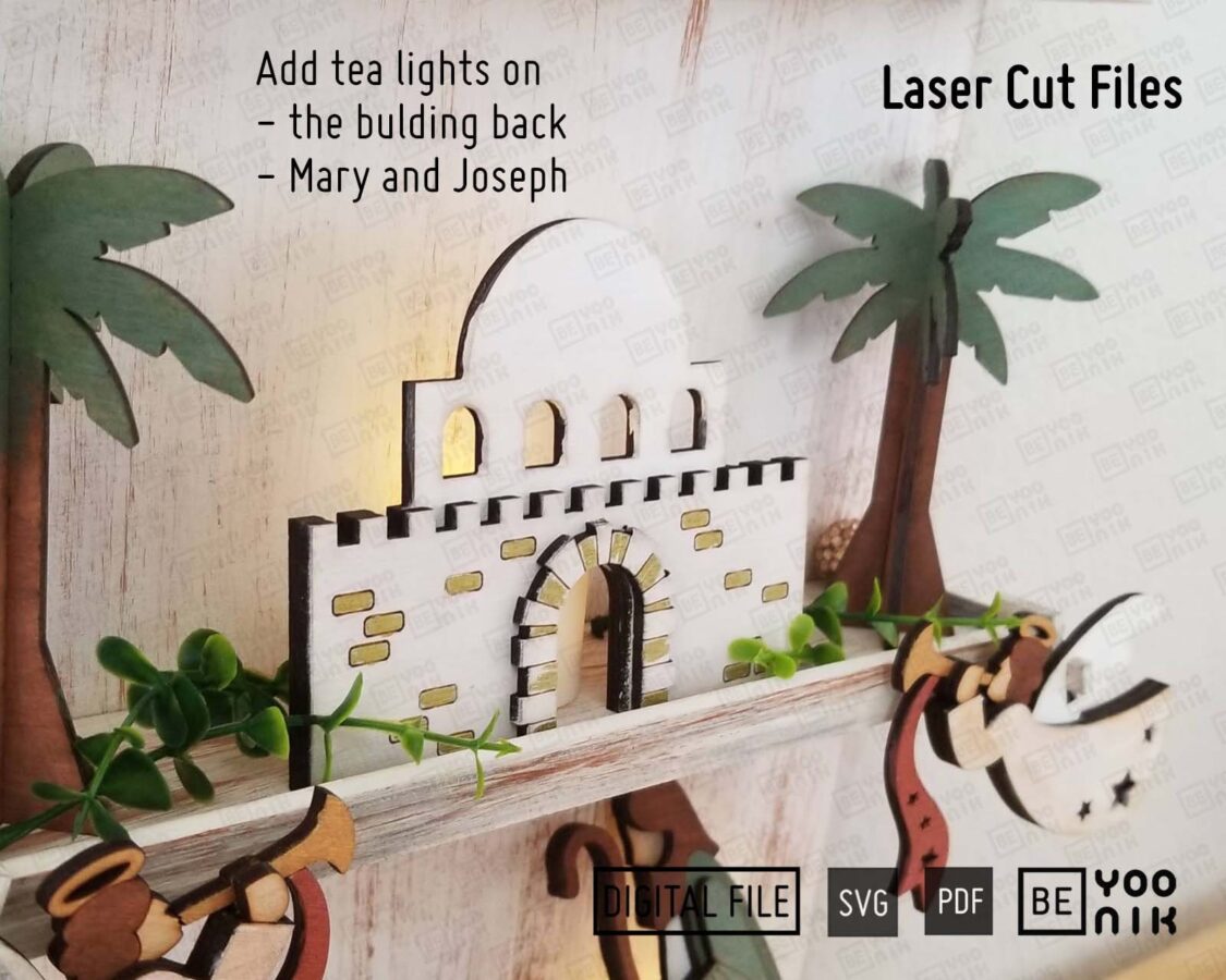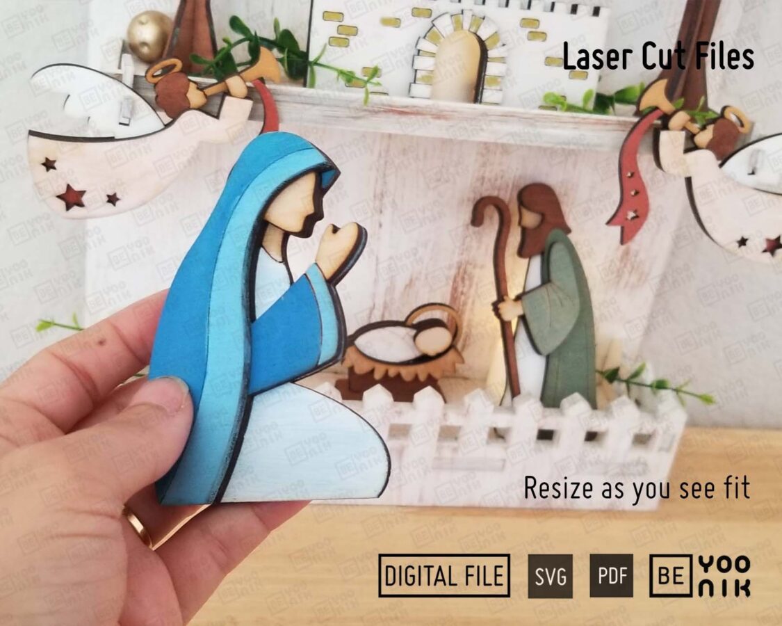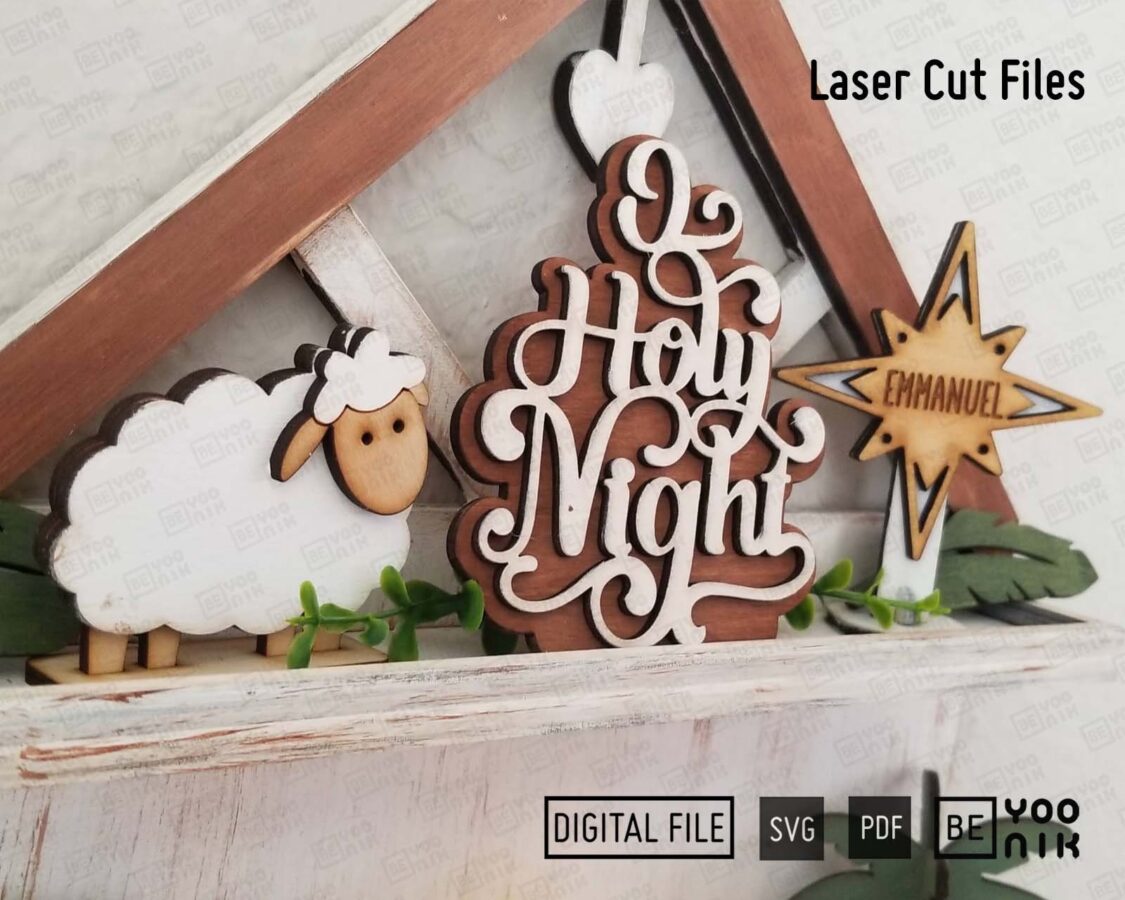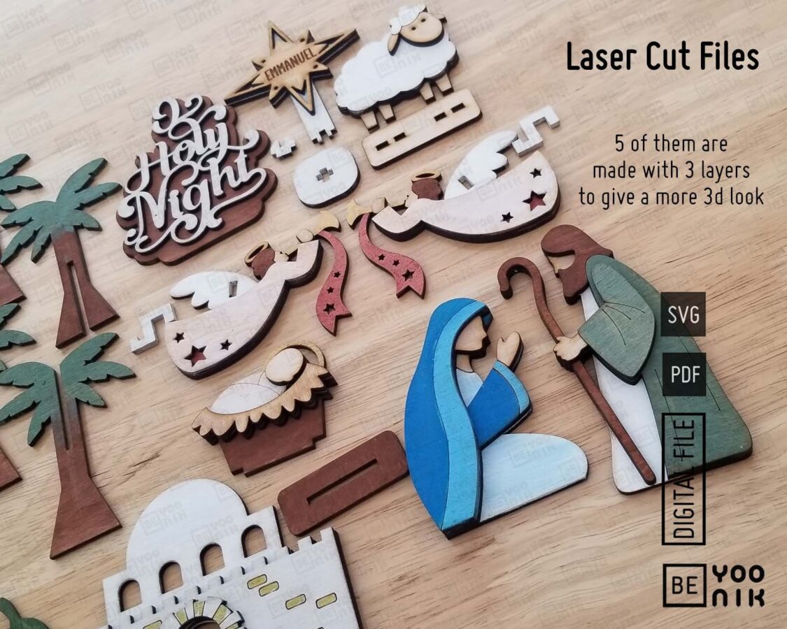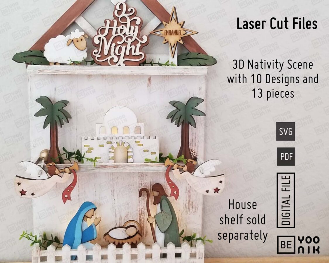 Bandeja de Natividad Cortada con Láser | 10 Diseños en SVG y PDF para Decoración Navideña