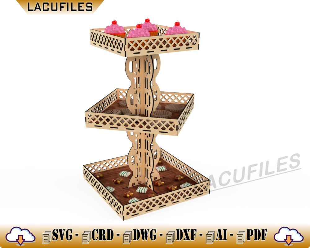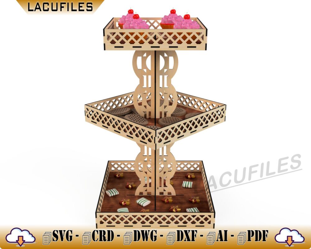 Bandeja escalonada de tres niveles para corte láser – Soporte de bocadillos decorativo