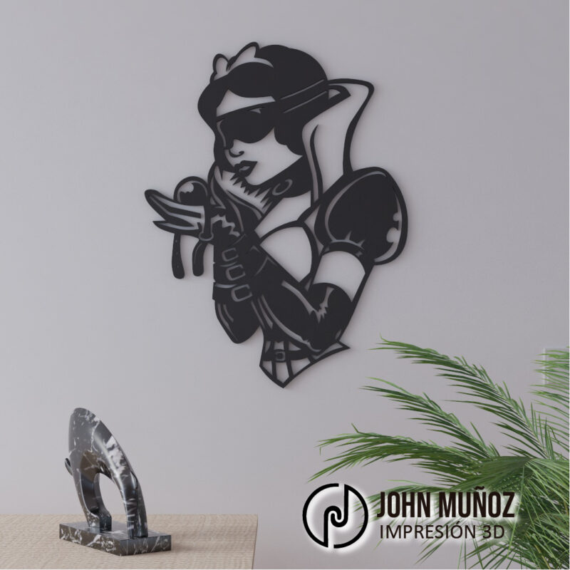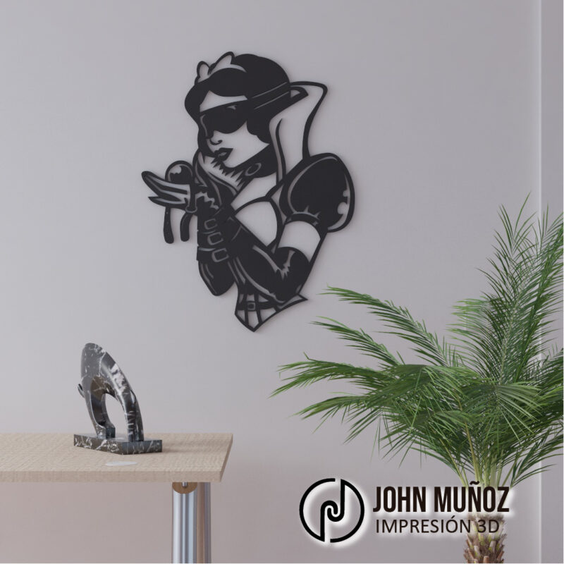 Una princesa que no necesita un príncipe… solo su lado oscuro. Este diseño mezcla sensualidad, rebeldía y estilo gótico, ideal para espacios con personalidad. Perfecto para estudios, dormitorios alternativos o como pieza provocadora en una galería privada.