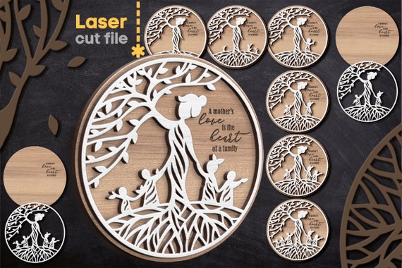 Bundle de Archivos SVG de Árbol Madre para Corte Láser – Diseño Layered para Glowforge y Cricut, Descarga Rápida