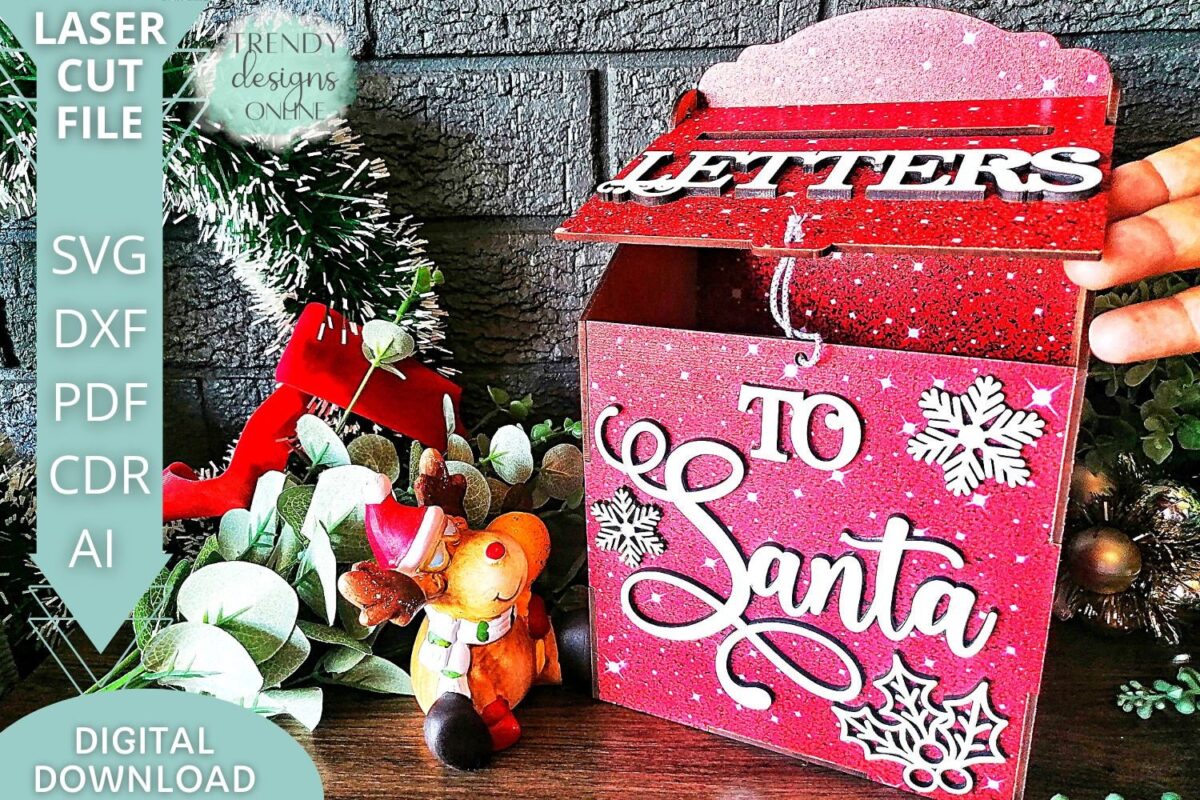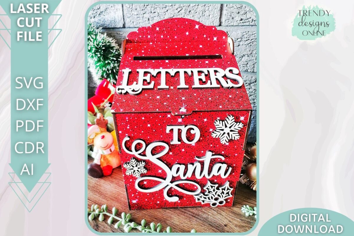 Buzón de Santa SVG para cortadora láser, archivo digital navideño para Glowforge, uso comercial
