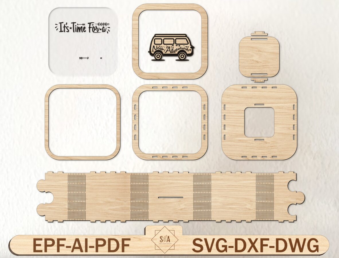 🌲 El diseño está creado especialmente para ser compatible con máquinas Glowforge y otros cortadores láser. La caja está elaborada con madera contrachapada de abedul báltico de alta calidad, con un espesor de 1/8″ (3 mm).