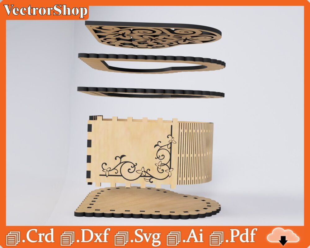 Caja de corazón romántica para corte láser – Archivos SVG, DXF y CDR para CNC