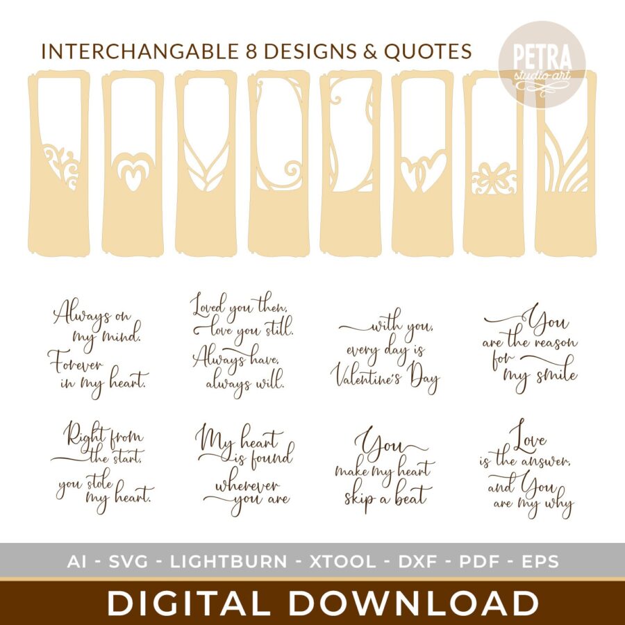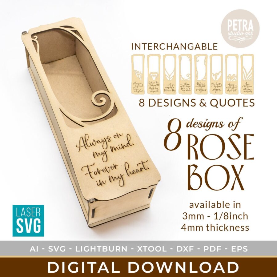 Caja de flores de San Valentín cortada a láser – Archivos SVG con diseños intercambiables y citas románticas