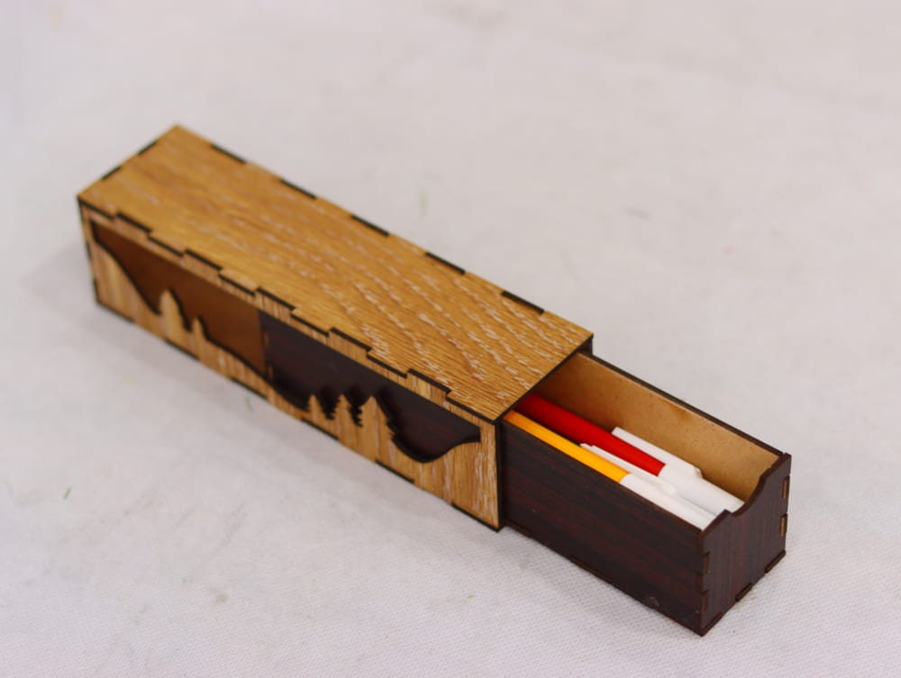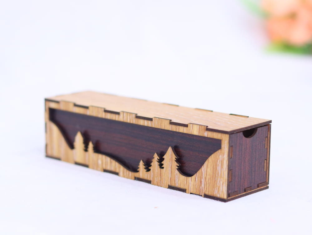 Caja de lápices de madera decorativa cortada a láser – Diseño digital descargable para impresoras CNC