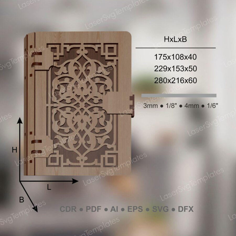 Caja de libro de madera con corte láser – archivos SVG y DXF para Glowforge y Cricut
