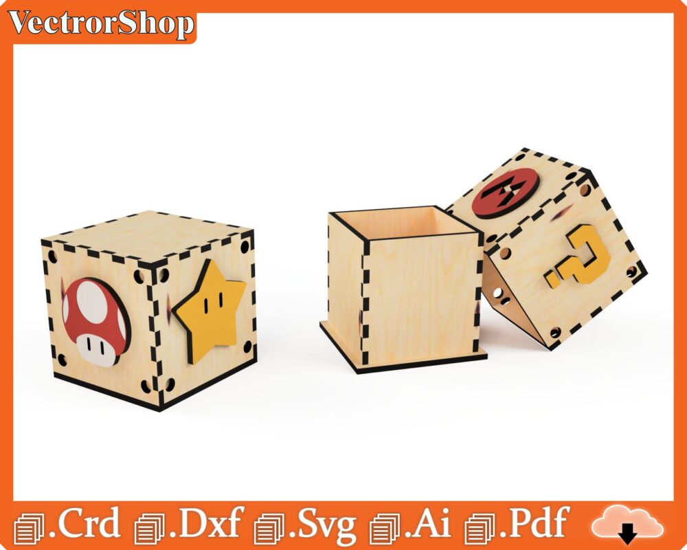 Caja Sorpresa Mario Bros para Corte Láser – Vectores y Arte Decorativo para Proyectos Creativos