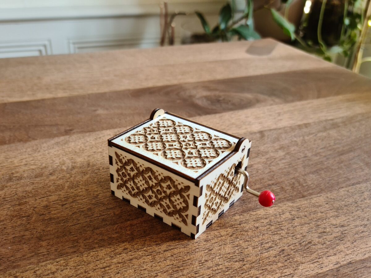 Caja de Música DIY – Archivos Corte Láser SVG DXF Lightburn – Estuche Manivela 3 mm