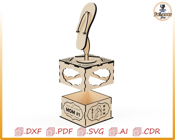 Caja de regalo única con diseño de sandalia para mamá, corte láser, ideal para el Día de la Madre.
