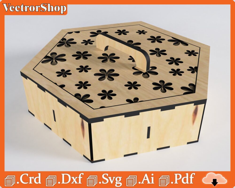 - Tipo: Caja hexagonal para corte láser.