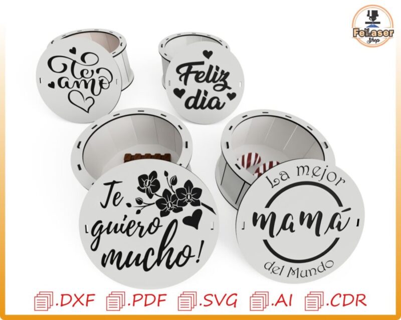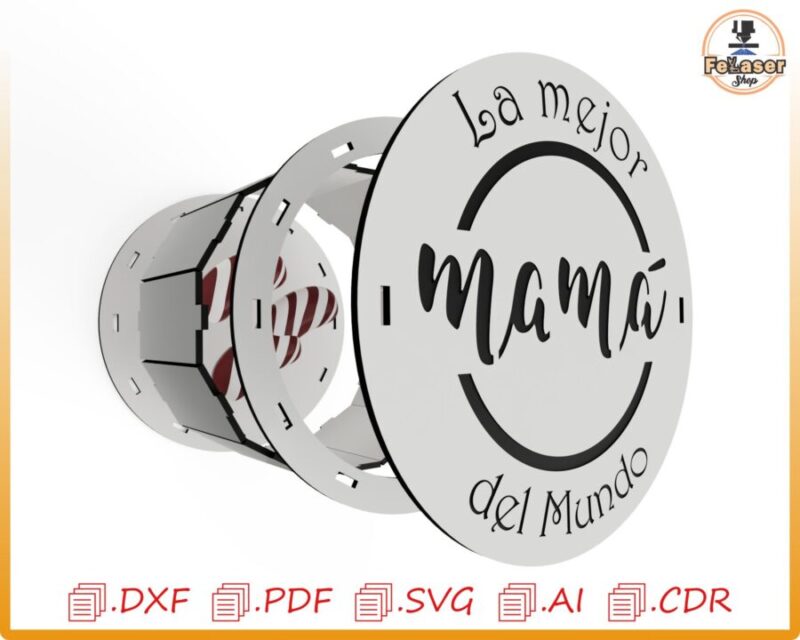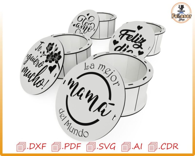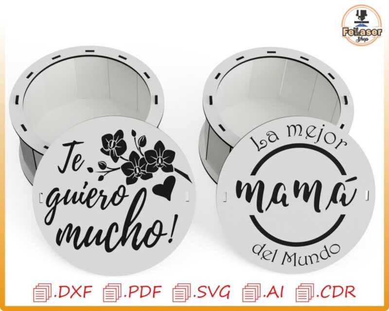 🎁 ¡Celebra el Día de la Madre con nuestra hermosa Caja Redonda Personalizada, perfecta para un regalo único y especial! Esta caja es ideal para ser creada con corte láser y CNC, permitiéndote darle un toque personalizado y especial.