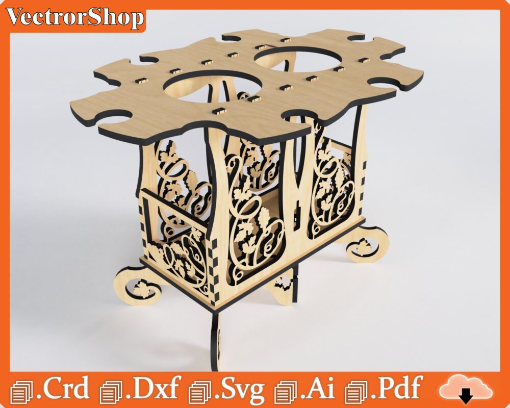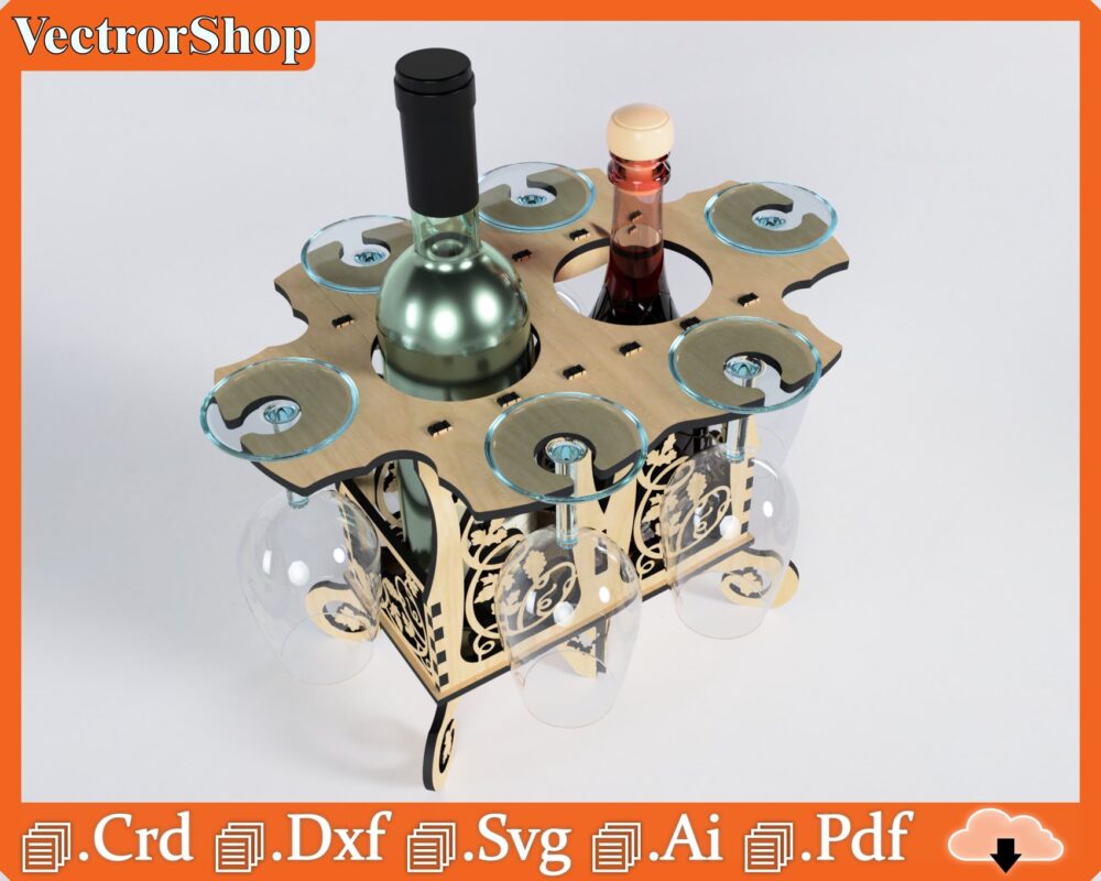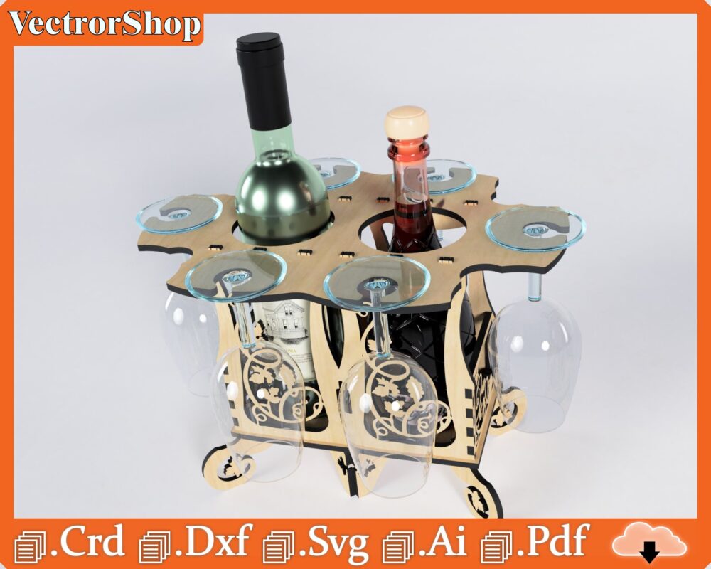 Caja para vino con soporte de copas – Diseño elegante para corte láser CNC