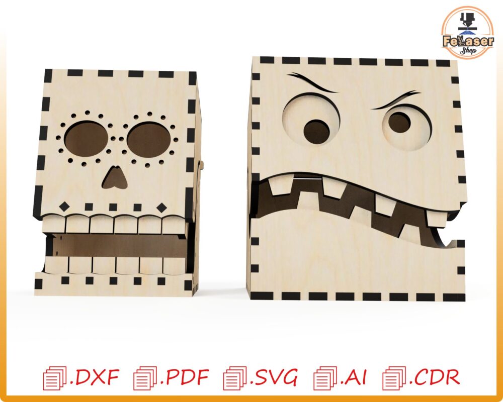 🎃 ¡Celebra Halloween con nuestras increíbles cajas malgeniadas para corte láser! Diseños únicos y personalizables que darán un toque especial a tus decoraciones. Recibe un archivo ZIP con una variedad de formatos listos para el corte en:
