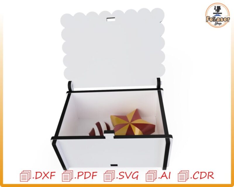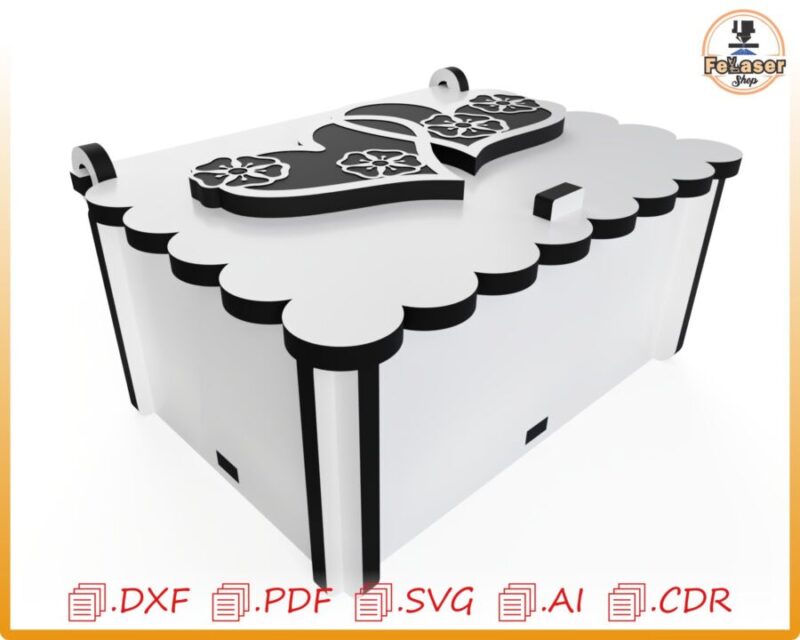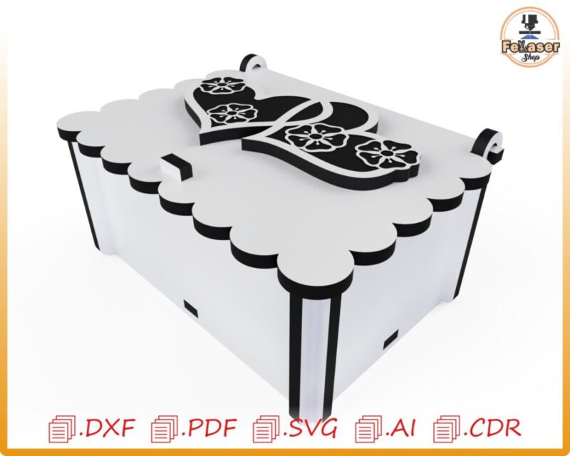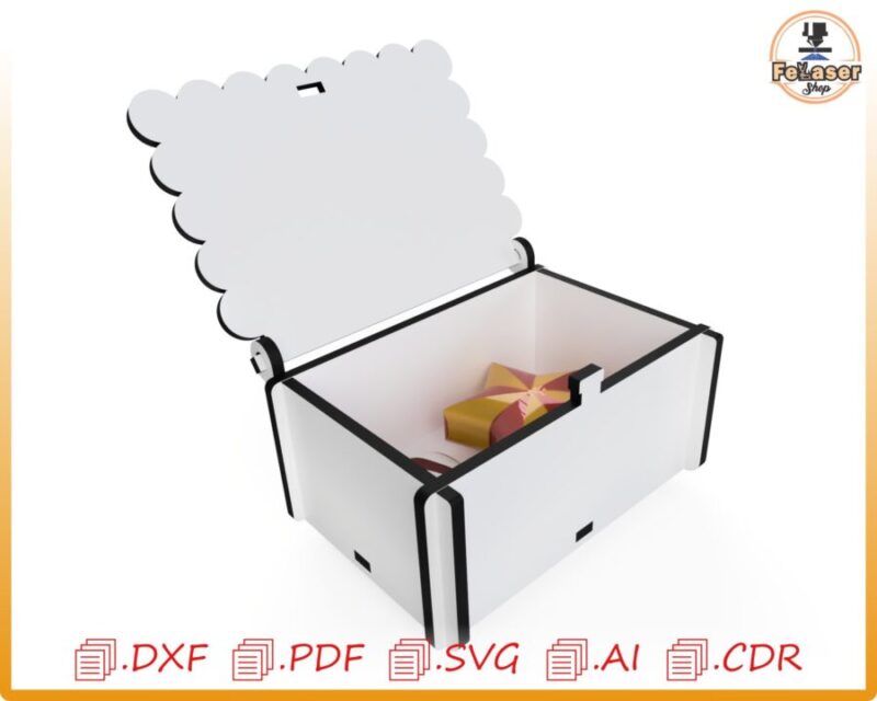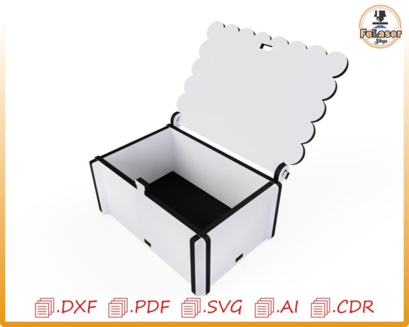 cajita, diseño, almacenamiento decorativo, corte láser, archivo digital, madera contrachapada, personalizable, formato DXF, formato SVG, regalo creativo.