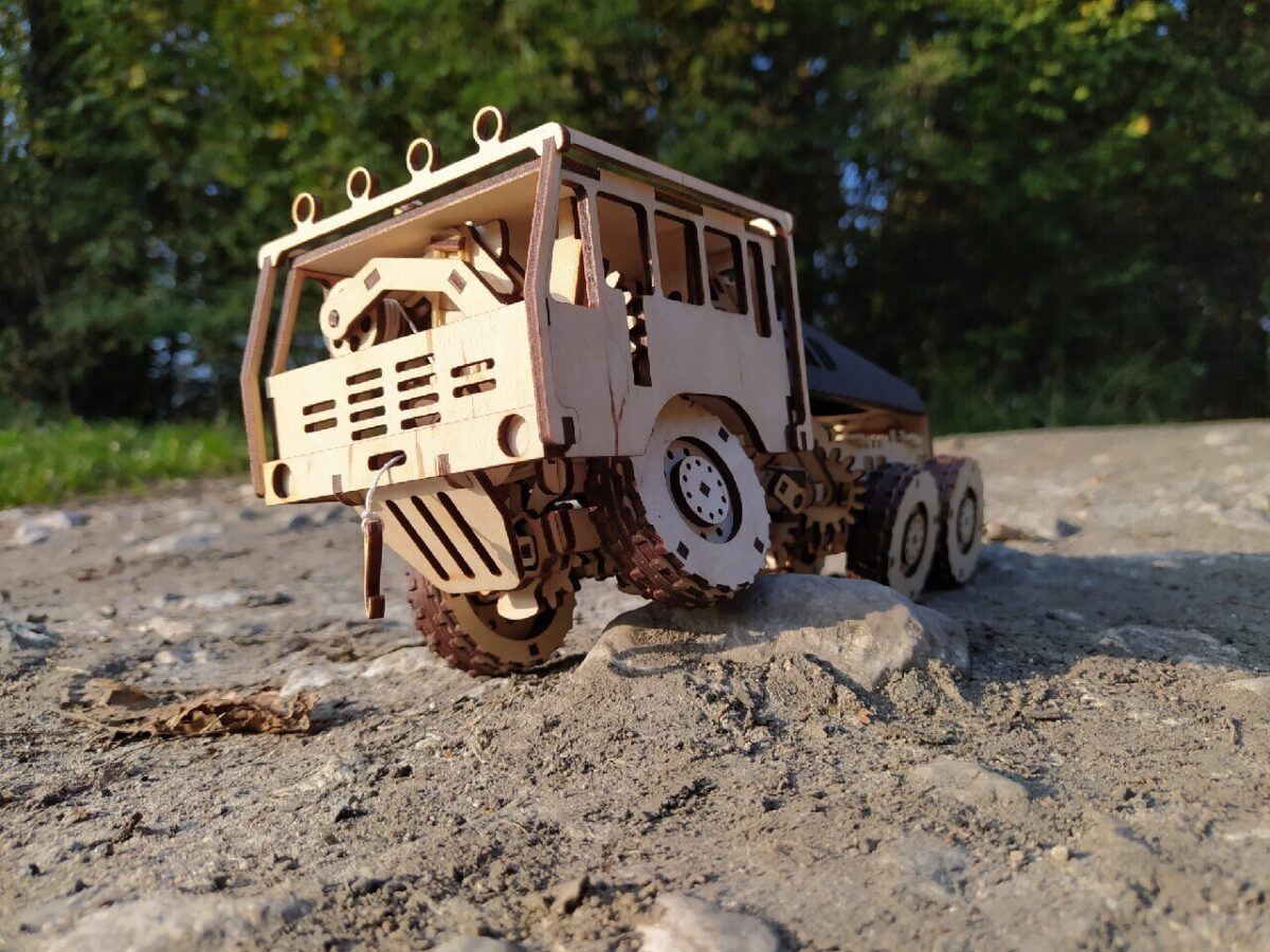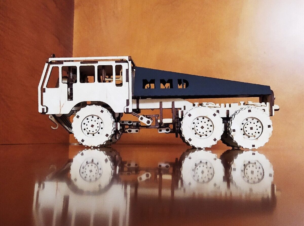 Camión 6×6 de madera contrachapada cortado a láser – Modelo mecánico digital descargable