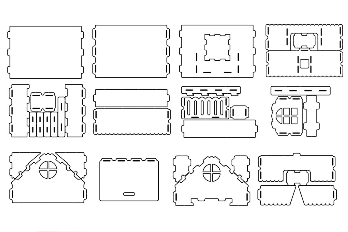 Casa de muñecas de cartón cortadas con láser – Archivos DXF SVG para CNC y Glowforge, proyecto DIY