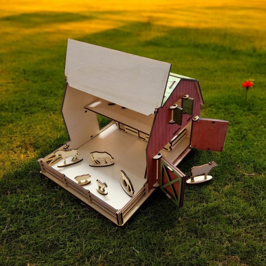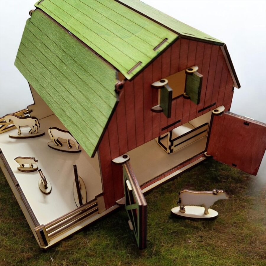 Casa de muñecas de granja: patrón cortado con láser para barnices y decoración infantil