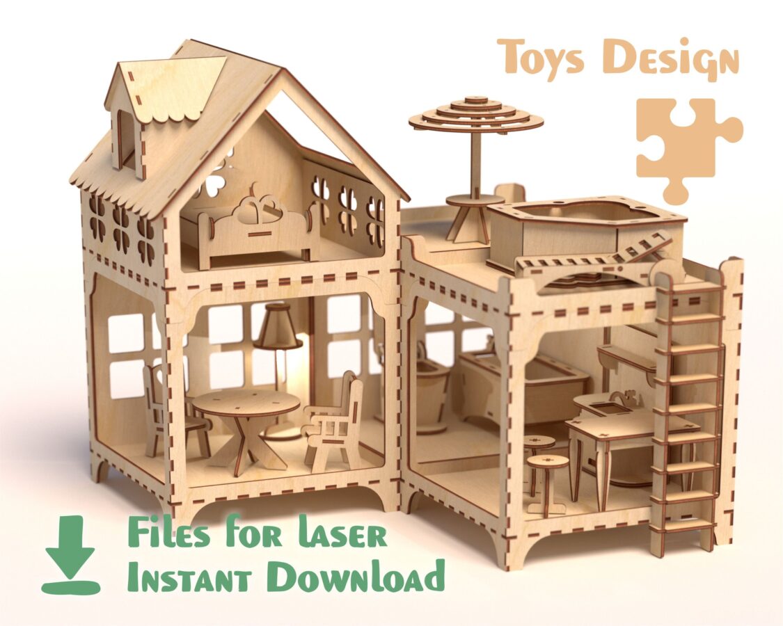 🏡 ¡Crea momentos mágicos con nuestra encantadora casa de muñecas de madera! Este set incluye muebles y archivos para corte láser, perfectos para dar vida a la imaginación de los más pequeños.