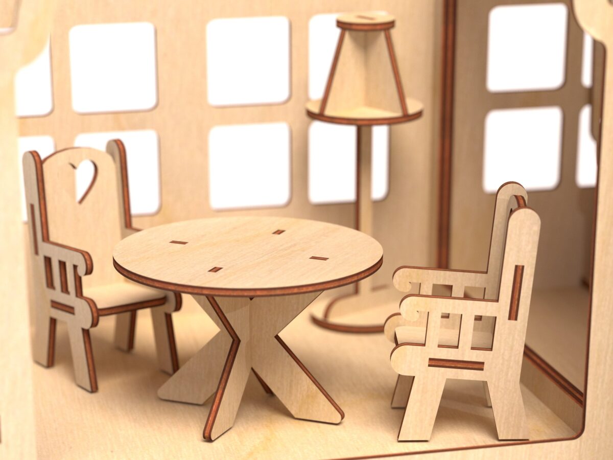 Casa de muñecas de madera y muebles – Archivos SVG, PDF, CDR para corte láser
