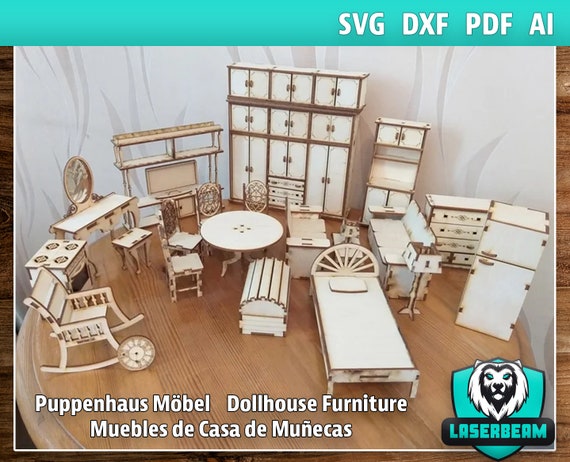 Planos de Casa Miniatura y Muebles para Corte Láser – Accesorios para Casa de Muñecas