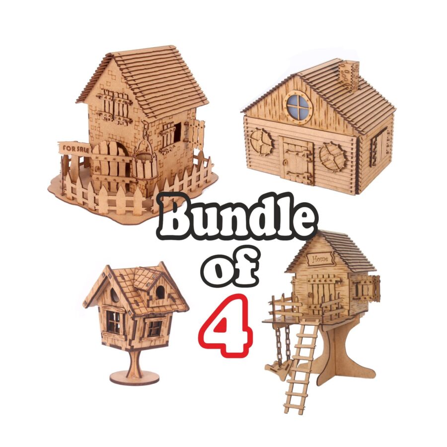 Plantillas de casas de madera medievales para corte láser – 4 archivos digitales (DXF, SVG, AI, CDR, PDF)