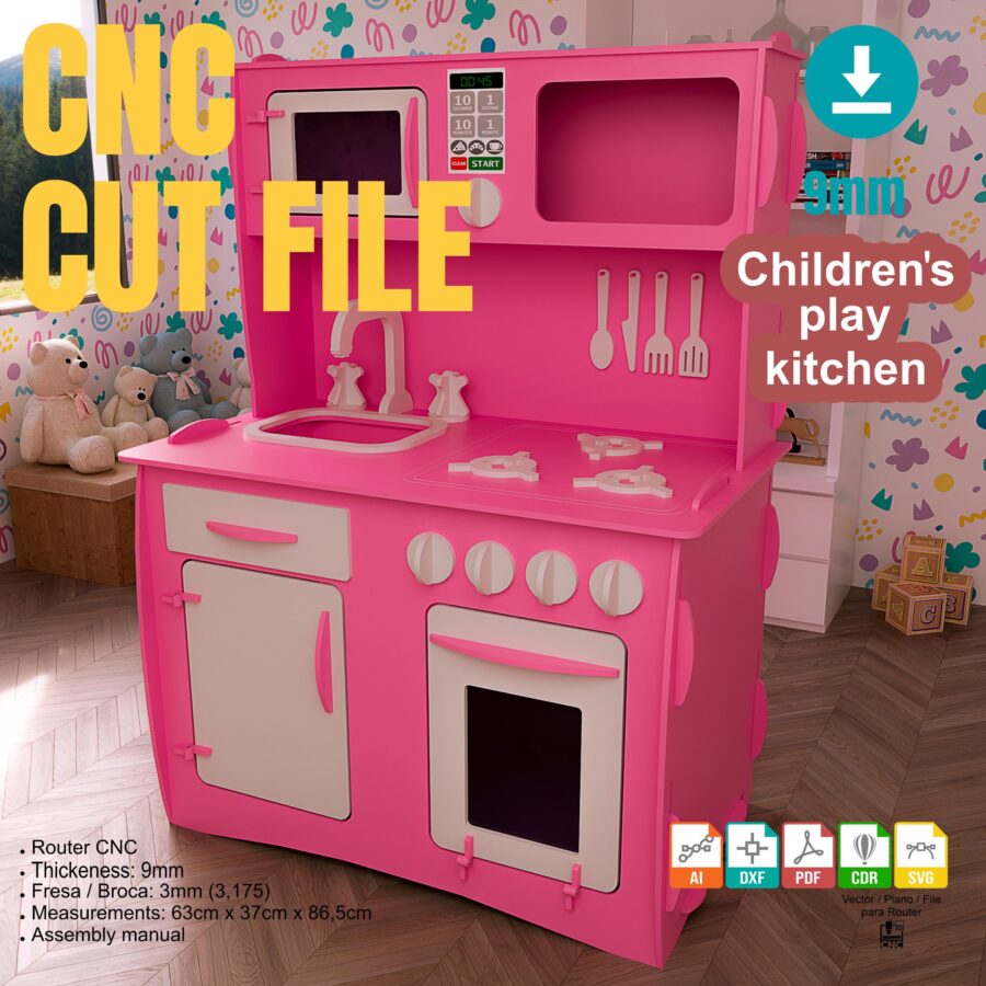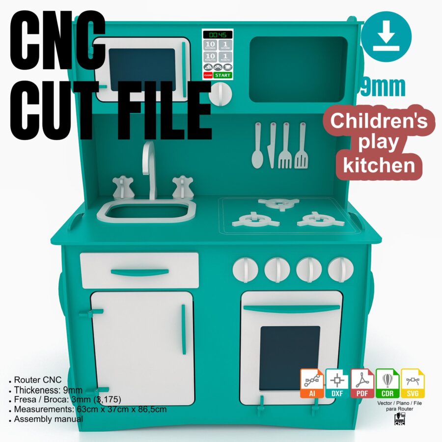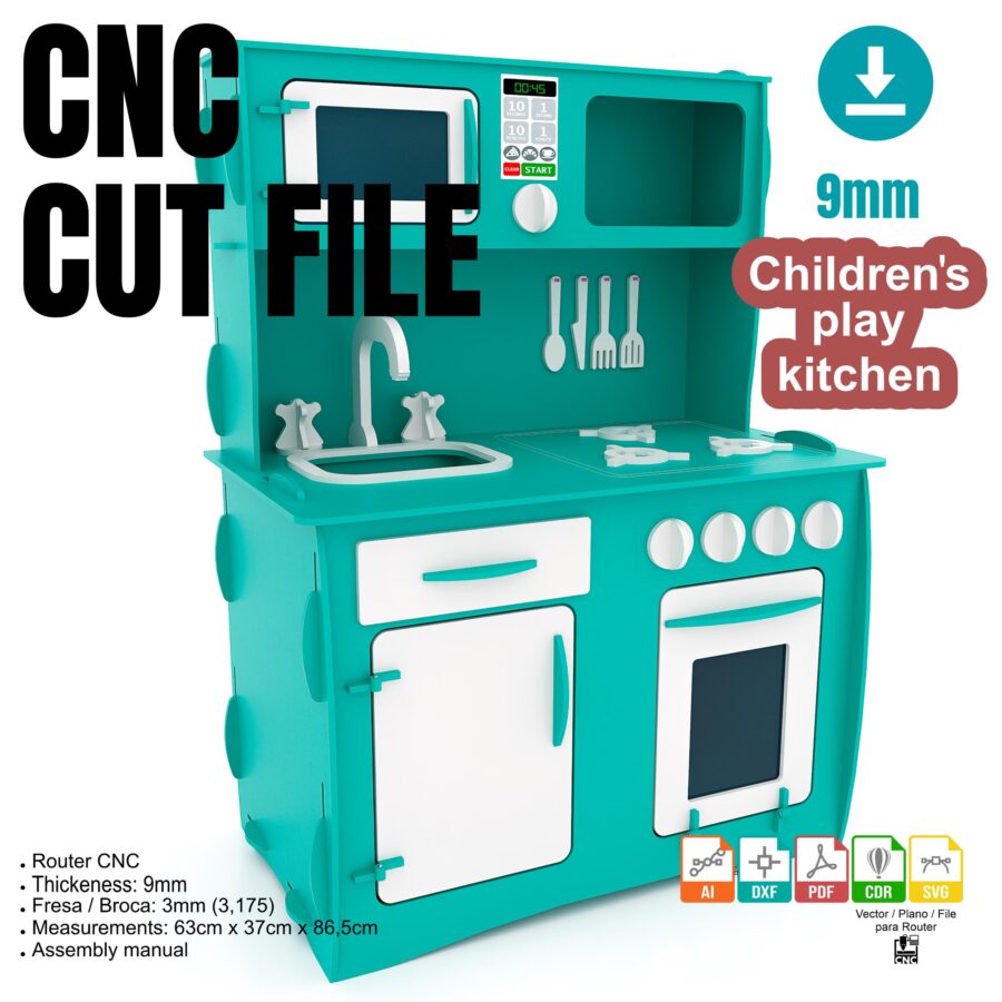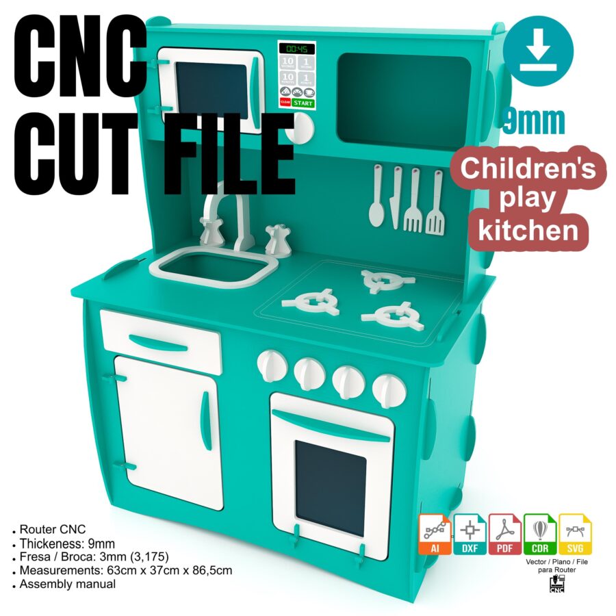Cocinita Infantil de Corte Láser – Planos DXF para Proyectos Creativos y Router CNC